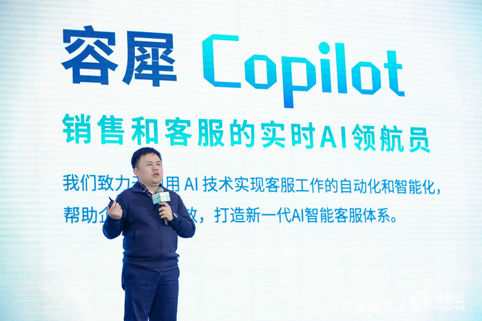 在发布会现场,容联云产业数字云事业群副总经理孔淼宣布了容犀智能品牌的诞生,同时正式发布全新生成式应用容犀Copilot。