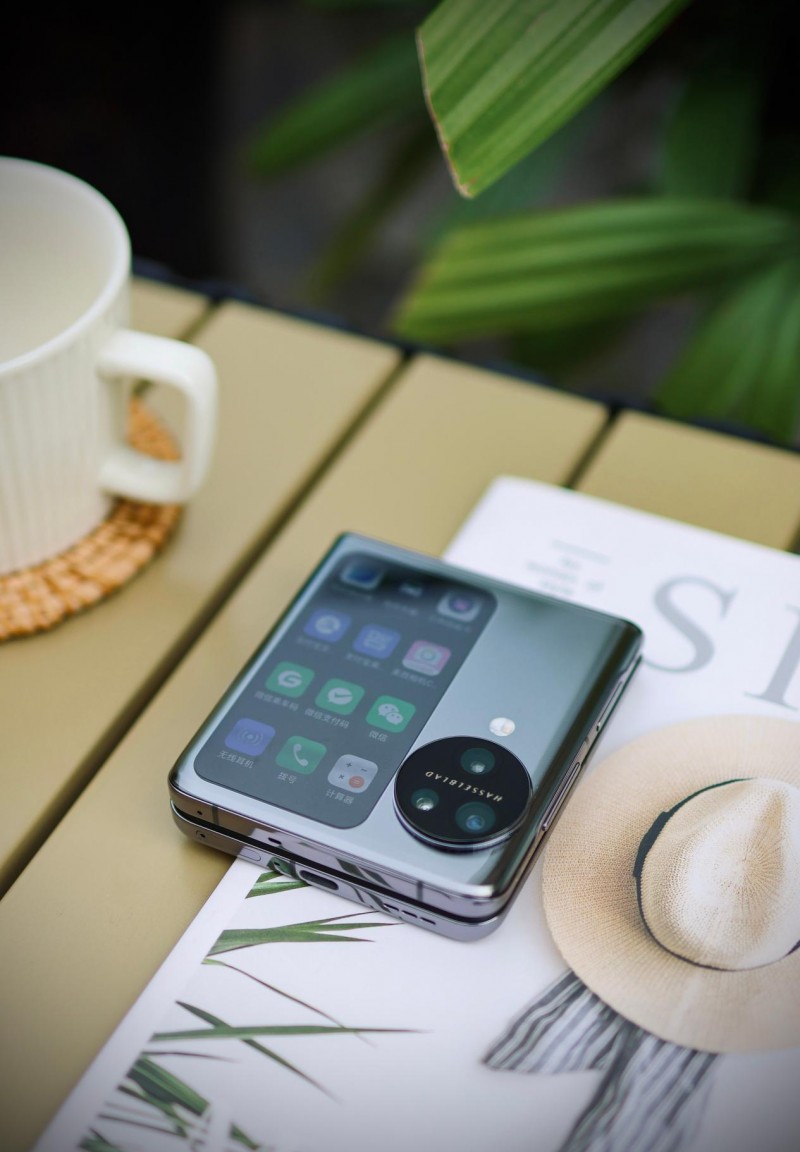 机身采用创新超韧精工拟锥铰链,能够在100万次折叠后无损,后置5000万主摄+4800万超广角+3200万专业人像三摄组合,搭配哈苏影像和小窗实时预览功能,是目前影像实力最强的小折叠屏手机之一。
