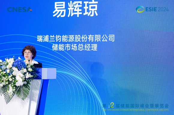 同期,瑞浦兰钧全球储能市场总经理易辉琼在ESIE 2024新能源与储能融合发展论坛上发表了主题为《问顶电池助力绿色储能产业发展》的演讲报告,并于下午,在瑞浦兰钧展台详细介绍问顶345Ah储能电芯全面升级的创新优势,以降本增效赋能全储能应用场景,树立新能源行业新标杆。