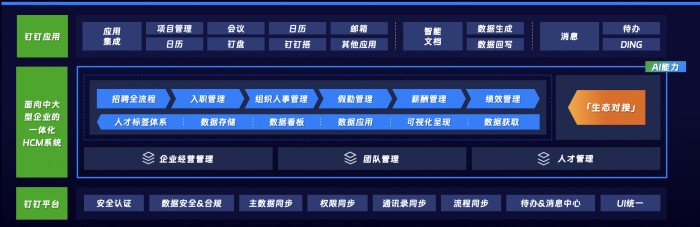作为协同办公平台,钉钉自身并不下场做各个领域的SaaS产品,而是开放包括智能化底座(AI PaaS)在内的各种PaaS平台,选择与垂类合作伙伴进行深度融合,提供一体化产品。