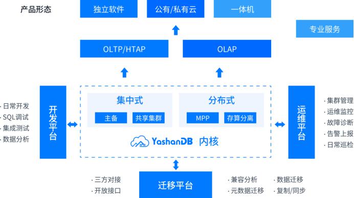 历经数年的潜心研发,YashanDB 在 2022 年正式发布了首个版本正式,并确立每年发布两个大版本的节奏。至去年,我们已针对不同业务场景,构建了基于全自研内核的完善产品体系,涵盖 1 个自主内核、单机 / 主备数据库、共享集群数据库、分布式实时数仓、空间数据库四大产品,以及迁移平台、运维平台、开发平台三大工具。