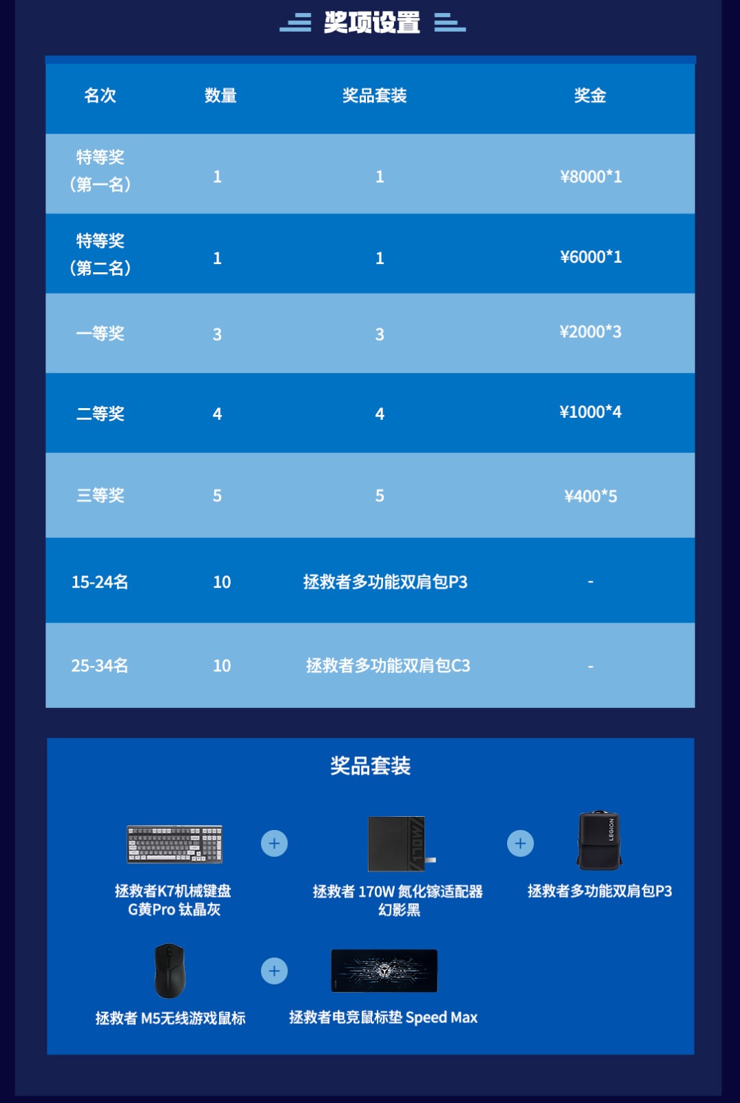 本次大赛设有总额高达12万RMB的奖池,除丰厚的现金奖励,还有联想拯救者笔记本、平板电脑等前沿科技奖品,为你的技术探索保驾护航,创造无限可能。