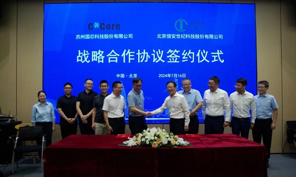 此次战略合作,是双方在网络安全领域共同探索与实践的新起点。根据协议,信安世纪将优先采用国芯科技的高速密码芯片进行密码产品研发,并在开发过程中给予上层调度技术支持配合;国芯科技也将以富有性价比的芯片价格及优先技术支持作为回应,为信安世纪的密码应用产品提供坚实的底层技术支持,实现双方的资源共享、技术互补,进而共同促进产业链的协同发展。