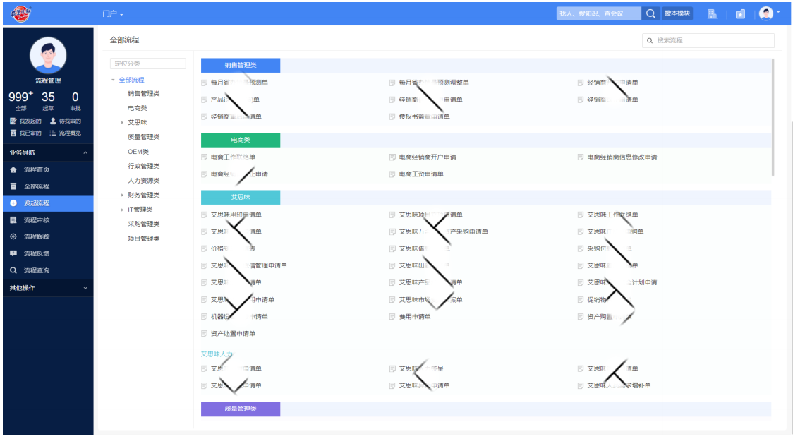 构建销售、行政、质量、财务等多样化、多类型的流程管理模版,实现流程一体化管控,助力企业优化流程审批,提升各部门各岗位办公效率。