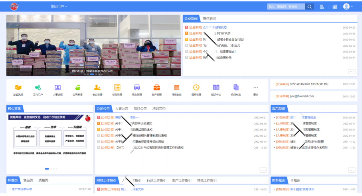 搭建集团门户、个人工作门户、人事门户等,统一办公入口、新闻送达、企业公告、制度规范、待办待阅等,个人门户链接多业务更便捷。