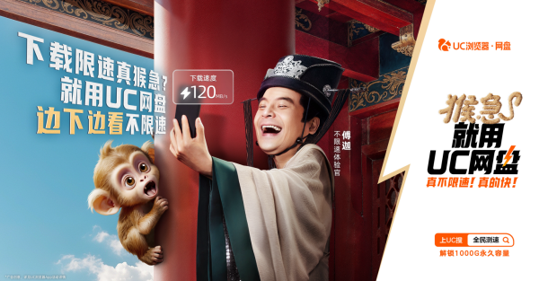 暑期来临,除了在线娱乐与线上消费激增,户外出游旅行拍照与备份也成为用户刚需。UC网盘借势推出「猴急就用UC网盘!真不限速!真的快」的活动主题,邀请夏季大热剧《庆余年》中扮演辛其物一角的国家一级演员傅迦拍摄了一支「猴急」广告,从「下载边看边下不限速的快」、「倍速云播不限速的快」、「大文件传输不限速的快」到「海量备份不限速的快」,全方位的告诉用户,「真不限速的快」能够解决你被限速「猴急」的瞬间。