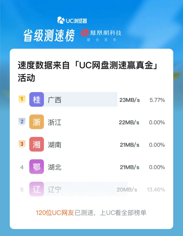 随着UC浏览器在「年末女神榜」、「歌手摇人榜」的爆火,「会玩」成了UC网友的知名标签。UC网盘暑期同样打造了「测速榜」,引发海量用户关注与参与。用户仅需通过UC网盘暑期活动测速,平台将识别用户的所在城市和手机设备,将全国测速用户的平均测速结果汇聚为「省级测速榜」、「城市测速榜」、「手机品牌测速榜」和「争强好胜测速榜」,并与凤凰网科技联合发布测速榜单。在榜单里,用户不仅可以看到不同城市下载平均速度的排行、手机不同机型与品牌的下载平均速度排行,还有「咸粽区 vs 甜粽区」等有趣味的测速榜单。