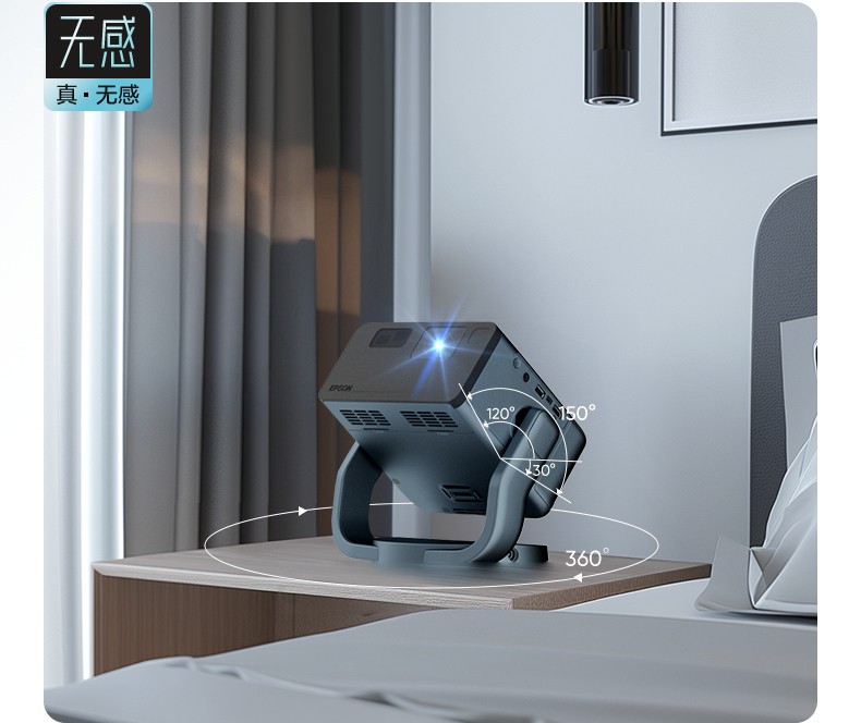 爱普生EF-17N不仅以高品质的音画满足用户的视听需求,更以灵活多变的全景云台设计,赋予家居生活更多可能。EF-17N支持150°俯仰和360°水平调节,基于3D ToF模组定制开发,搭配CMOS高精度感应摄像模组,可实现快速全方位自动画面校正,让高品质视听变得“易如反掌”,极大提高了灵活性、并且扩展了使用场景。用户只需决定在哪里观看,剩下的就可以放心交给这位聪明的“光影魔术师”。值得一提的是,EF-17N采用金属材质的云台转轴,以出色的稳定性与耐用性,彰显出产品的精工品质与精湛工艺,抹平消费者的“续航”焦虑。