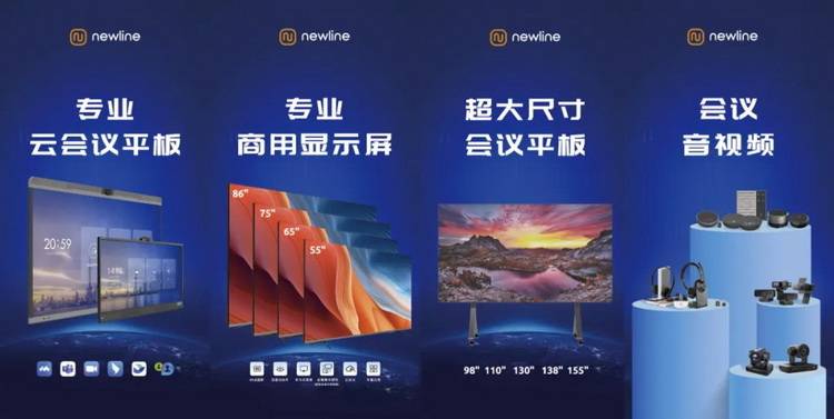除了通过强大的IT能力赋能企业外,Newline已经推出了专业云会议平板、交互平板、超大尺寸会议平板、专业商用显示屏、会议摄像头、会议麦克风、会议全向麦、会议耳机、会管会控设备以及相应附件,以满足不同用户的需求。