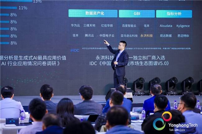 大会上,永洪科技CEO何春涛先生,进行了精彩的主题演讲,内容涵盖了永洪科技今年的荣誉、产品及技术的发展、以及对 GBI 看法及布局等多个方面,深度剖析了行业现状与未来发展趋势,为与会者带来了极具价值的思考与启示。
