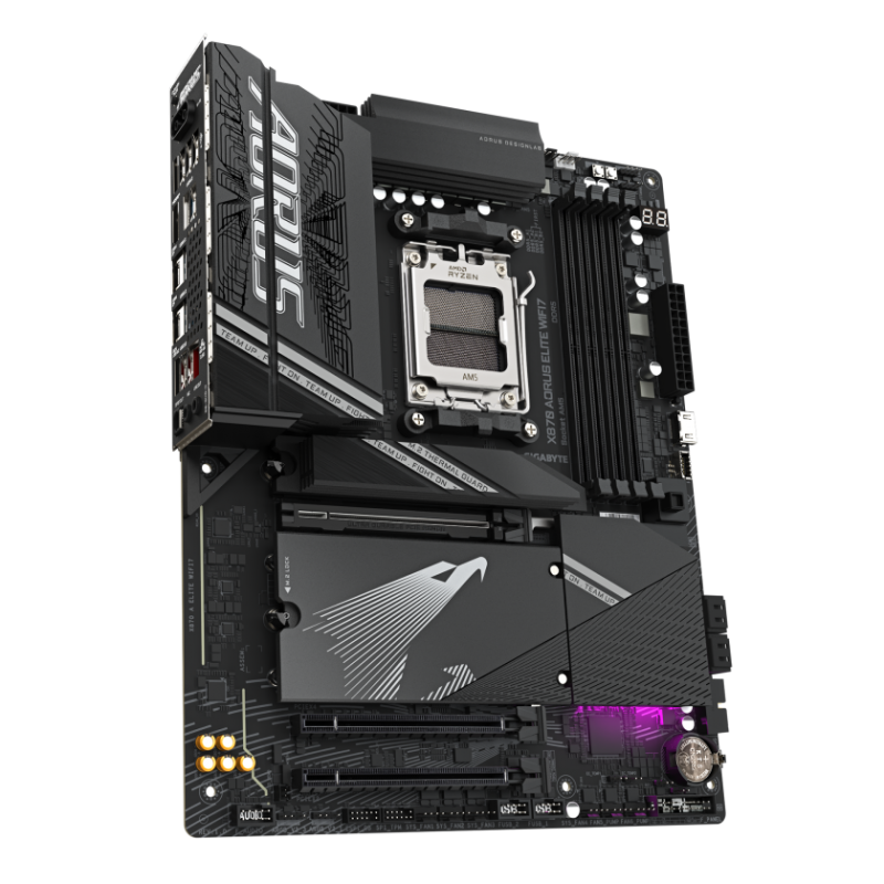 X870 AORUS ELITE WIFI7小雕主板拥有16+2+2相(单相60A)供电,搭配全身大面积的鳍片散热装甲和8MM豪华热管加持,即便应对锐龙9 9950X这样的旗舰处理器也能保证稳定的供电输出和适宜的温度。若与锐龙 7 9800X3D 搭配使用,更能进一步激发处理器的超频潜力,无疑是专业玩家的上佳之选。