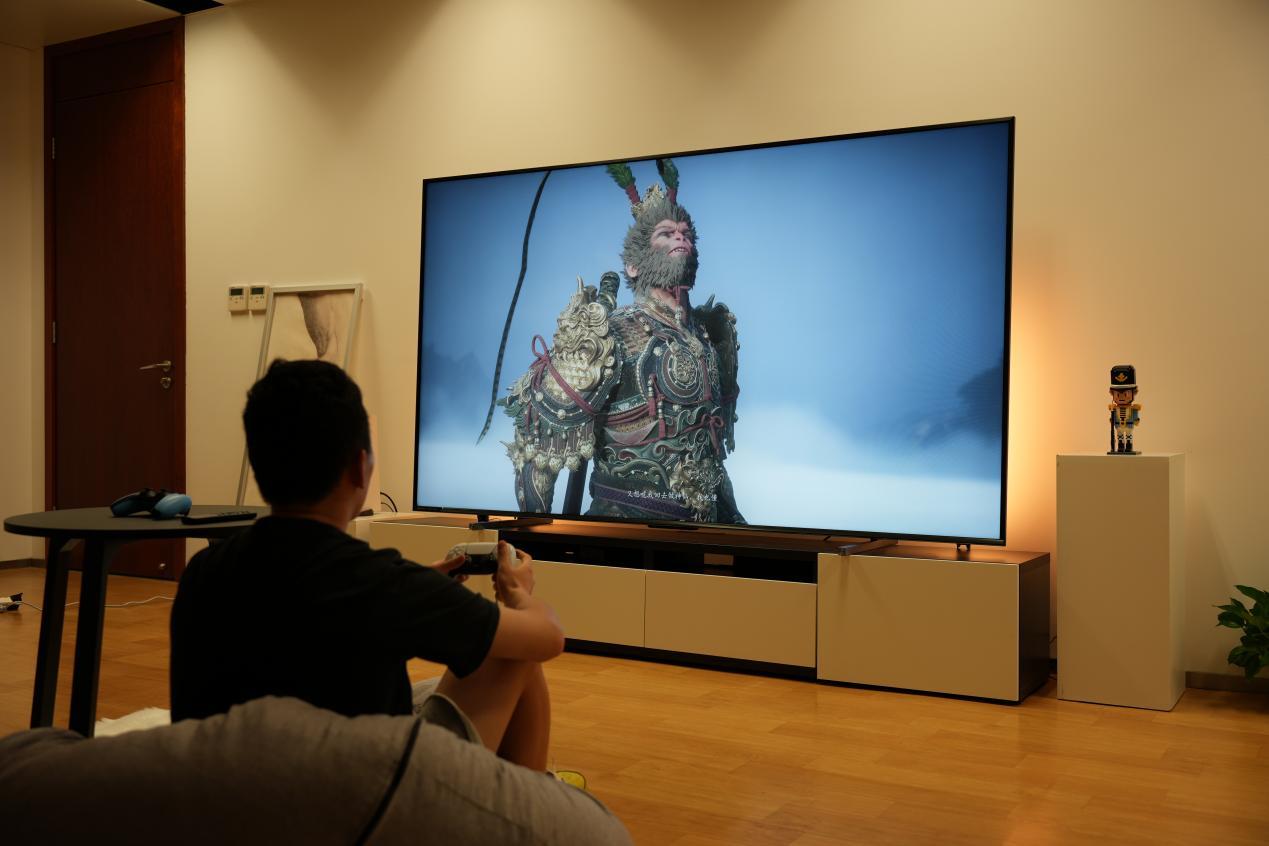00后木木是个典型的游戏迷,前不久心爱的国产游戏《黑神话:悟空》发售后,他果断买了一台100英寸的海信大电视,只为更好的游戏画质和体验。
