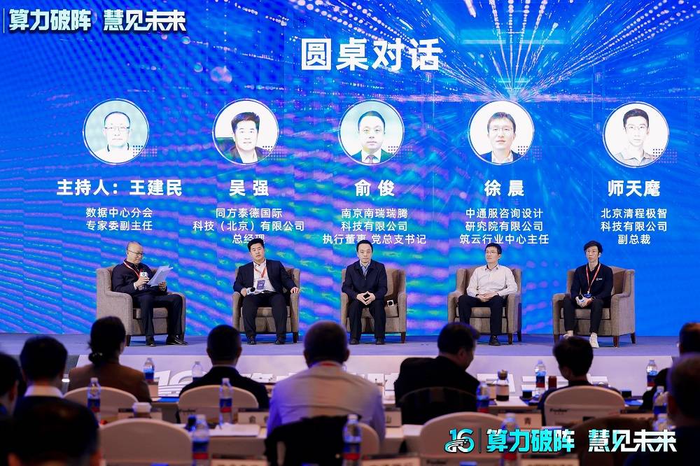 在由数据中心分会专家委副主任王建民主持的圆桌对话环节,同方泰德国际科技(北京)有限公司总经理吴强、南京南瑞瑞腾科技有限责任公司执行董事俞俊、中通服咨询设计研究院有限公司筑云行业中心主任徐晨、北京清程极智科技有限公司副总裁师天麾博士,从各自的实践与理解出发,聚焦算力时代的热门话题“智算中心与传统差异”“超大规模集群前景”“算力商业模式”等展开热烈讨论。