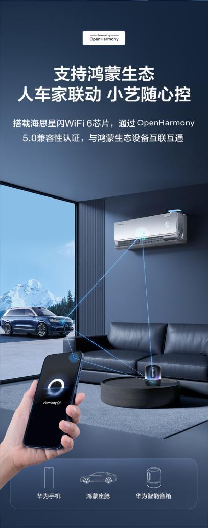 在交互与节能方面,TCL 小蓝翼P7 Ultra的AI语音控制支持100万+指令语音自由说,无需联网即可实现自由对话。AI省电技术通过超省电AI大数据模型算法2.0,不联网也能实现至高省电40%,其超一级能效(APF值5.60) 更代表了行业的顶尖水平。此外,该空调还搭载了海思星闪WiFi 6芯片,通过了OpenHarmony 5.0兼容性认证,能够与鸿蒙生态设备互联互通。通过小艺语音助手,用户可以轻松实现对空调的远程控制,实现人车家联动,让生活更加便捷、智能。