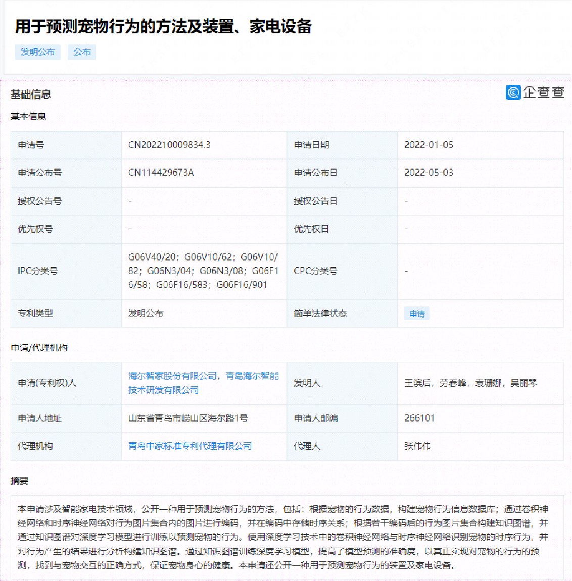 预测“毛孩子”的行为,海尔新专利聚焦“它经济”