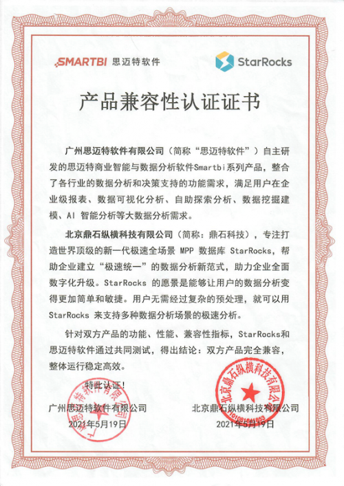致力于建立“极速统一”数据分析新范式的 StarRocks 近日携手广州思迈特软件有限公司(以下简称“思迈特软件”),与其自主研发的思迈特商业