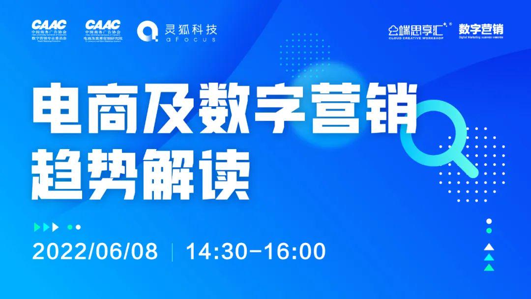 2022年6月8日下午,中国商务广告协会数字营销专业委员会联合CAAC电商及效果营销研究院、灵狐科技股份有限公司共同举办以《电商及数字营销趋势解
