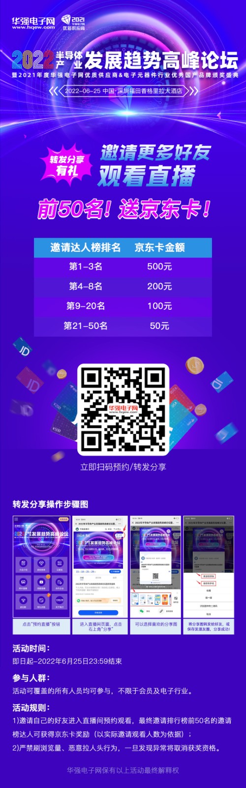 6月25日,华强电子网将在深圳福田香格里拉大酒店举办以“产业芯生态 引领新未来”为主题的“2022年半导体产业发展趋势高峰论坛暨2021年度华强
