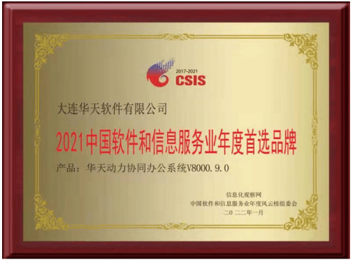 1月18日,“2021第五届中国软件和信息服务业年度风云榜”评选结果正式发布,华天动力协同办公系统荣获年度首选品牌,并入围2021中国数字化转型