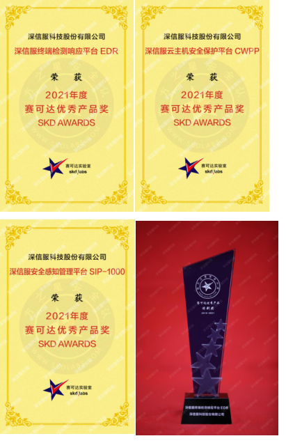 赛可达优秀产品奖发布2021获奖名单,深信服EDR、CWPP、SIP强势上榜