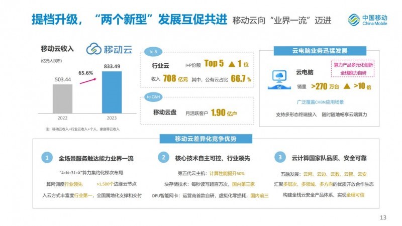 3月21日,中国移动(600941 SH)公布2023年财报。财报显示,中国移动2023年总营收达10,093亿元,同比增长7 7%,突破万亿元大关,铸就中国移