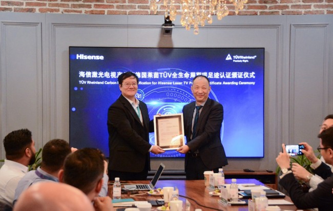 海信激光电视获颁TÜV莱茵全生命周期碳足迹证书 再树低碳发展标杆