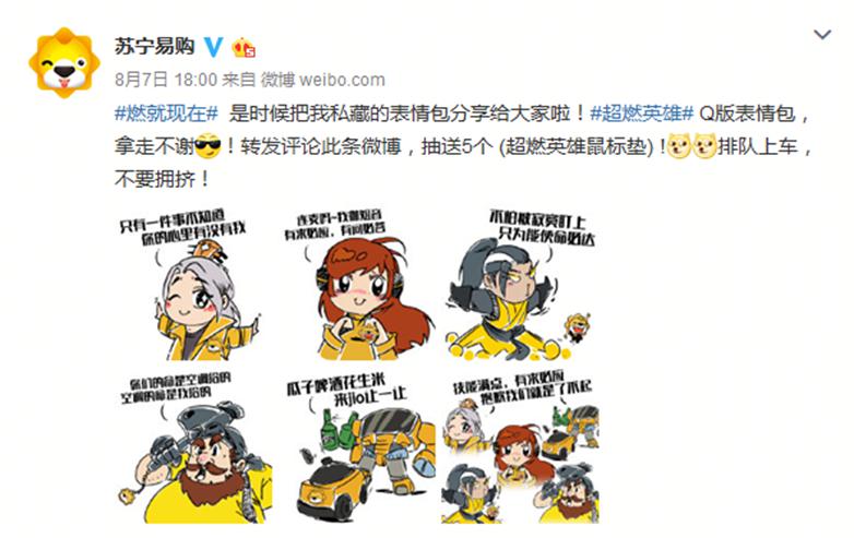 8月7日,苏宁小狮子拿出了自己私藏的“超燃英雄”的Q版表情包。