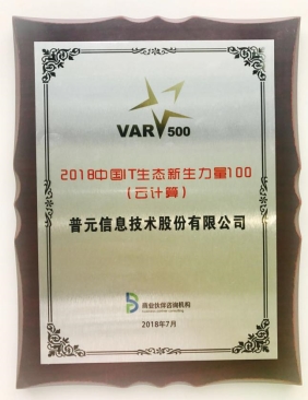 在近日由商业伙伴调研机构主办的《中国方案商500强》(VAR500)的调查评选中,普元获评云计算领域“中国IT生态新生力量100”称号。
