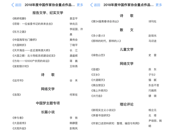 6月22日,中国作家网发布2018年度中国作家协会重点作品扶持办公室公告[第1号],公布2018年中国作家协会重点作品扶持选题名单