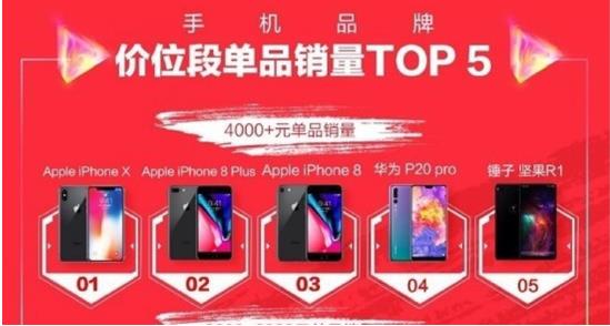 每年的京东618都是手机销售旺季,今年也不例外,那么在旗舰机中哪些手机卖得最好呢?据统计,在4000+价位iPhone占据了半壁江山,锤子坚果R1也跻
