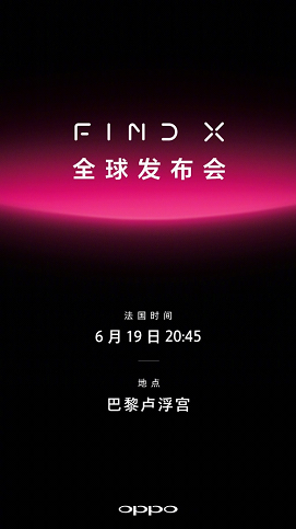 今天,OPPO正式宣布Find X将于6月19日(北京时间6月20日)在法国最着名博物馆卢浮宫面向全球发布。作为OPPO的未来旗舰产品,Find X的发布受到
