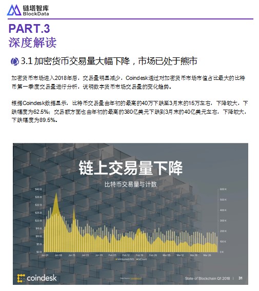区块链媒体Coindesk推出《2018年第一季度区块链发展报告》,链塔智库BlockData对其进行了深度解读。
