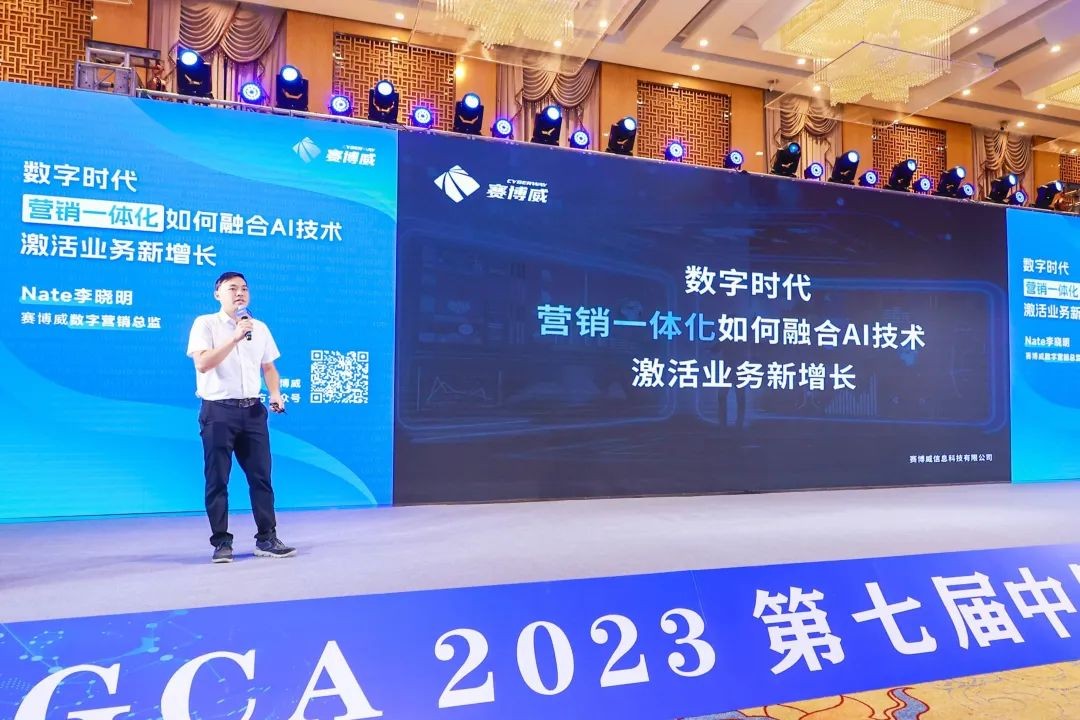 近日,赛博威受邀出席CGCA2023第七届中国消费品行业CIO大会,数字营销总监李晓明于大会现场发表《数字时代,营销一体化如何融合AI技术,激活业