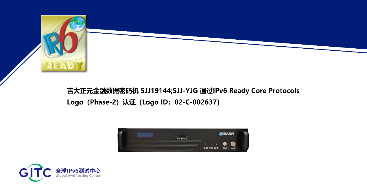 吉大正元金融数据密码机SJJ19144;SJJ-YJG通过IPv6 Ready Logo认证