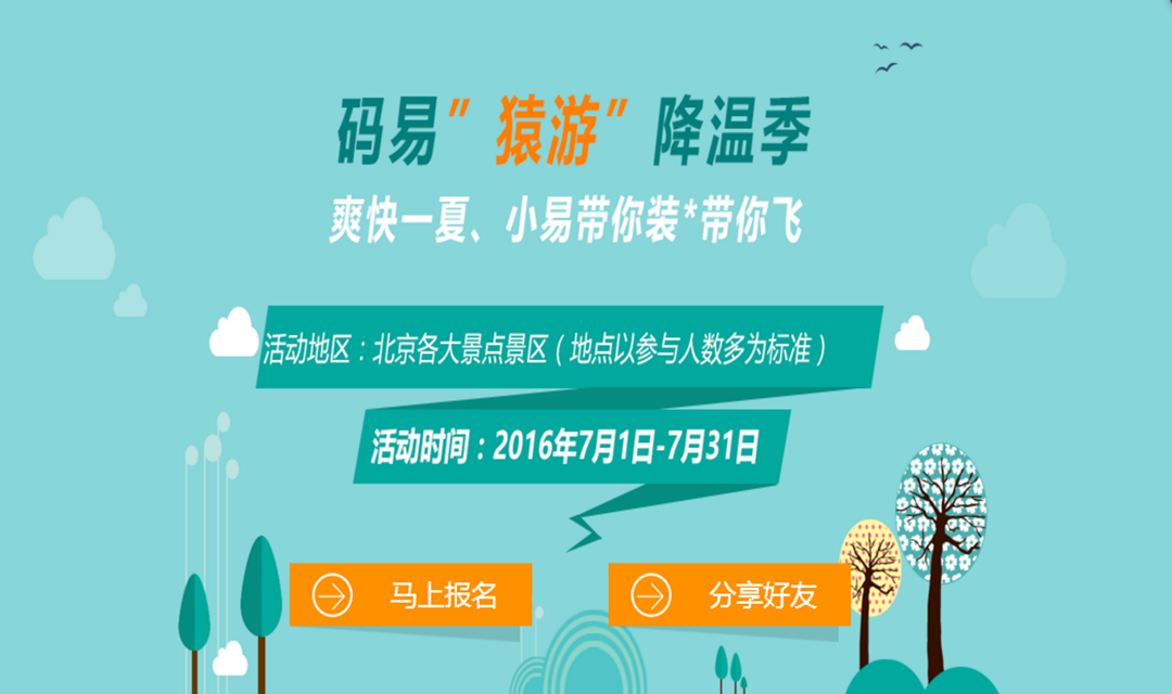 7月1日起,码易众包开启码易“猿游”之旅,活动期间,只需通过码易官网的报名通道参与报名就可以享受码易免费畅游活动,活动主要针对北京的程