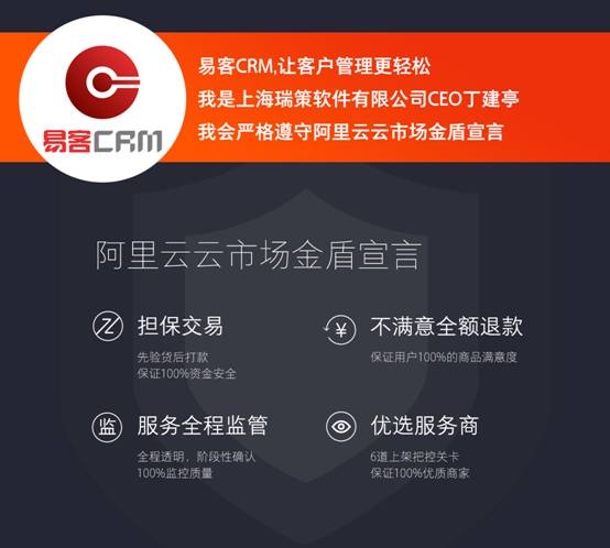 近日,阿里云旗下软件交易与交付第一平台——云市场联合易客CRM、东软、用友、驻云、数梦等上百家知名软件服务商,共同发布金盾服务宣言。