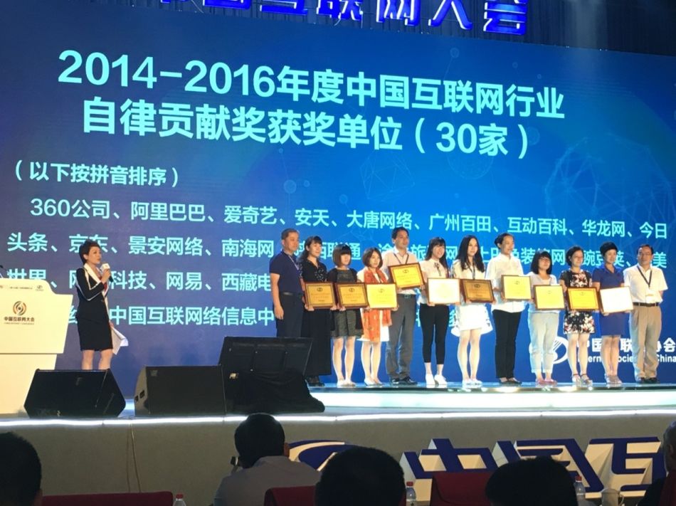 2016年6月23日下午,互动百科(www baike com)在2016(第十五届)中国互联网大会上荣获“2014-2016年度中国互联网行业自律贡献奖”。