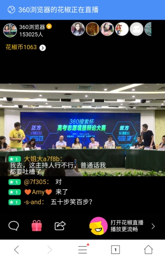 “360搜索杯”高考志愿填报辩论大赛由360搜索主办,由360安全浏览器、360手机浏览器及花椒直播全程直播,由人民大学辩手张晓涵、传媒大学辩手