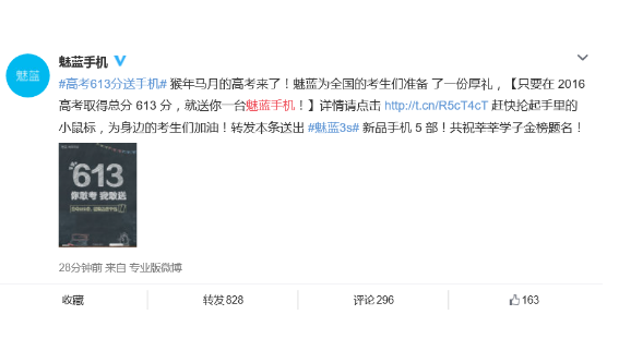 今天是高考的第一天,坐在考场里奋笔疾书的考生们可能还不知道,魅族为他们准备了一份惊喜大礼。每一位取得总分613分的考生都可以获得一部魅蓝