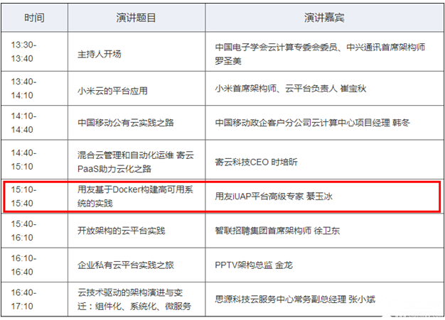 用友iUAP受邀出席第八届中国云计算大会大会,并将在19日下午的“云计算平台构建与实践论坛”分享“用友基于Docker构建高可用系统的实践”。