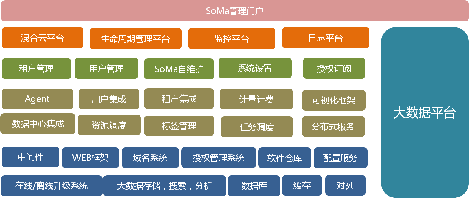 本方案充分利用iUAP SoMa平台支持数据中心的多样性,在26个省分别建立数据中心,并且在每个数据中心部署一套用友NC6 3应用系统,实现各个省