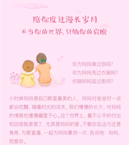 “妈妈是个大美人,岁月你别伤害她。”这句每天在心里默念一千遍的话,终于有机会说出来了。5月1日起,映客将为全天下妈妈献上母亲节大礼