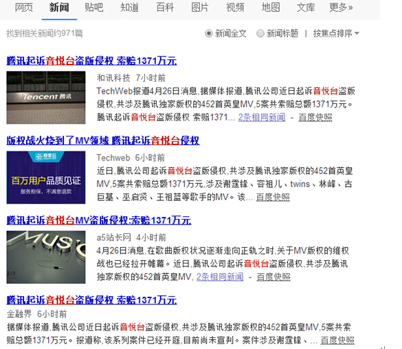 26日,腾讯接连发出系列新闻稿,宣布状告音悦台侵权,并索赔1371万元。