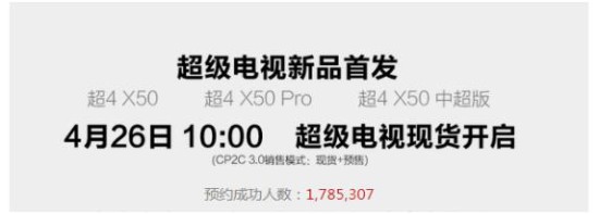 4月26日上午10:00,在4月20日“无破界不生态”春季新品发布会上首次亮相的超4 X50 Pro、超4 X50、超4 X50中超版三款新品,将在乐视商城(Le