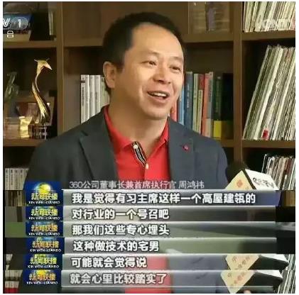 4月22日晚上,周鸿祎在接受《新闻联播》记者采访时表示,他这样的技术“宅男”,心里也更加踏实了。都知道互联网行业竞争可以用“惨烈”来形容