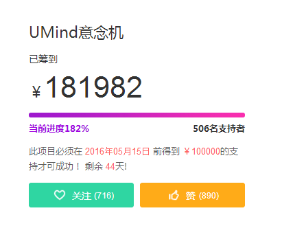 3月31日,UMind意念机发布会在北京77剧场举行,现场400多人座无虚席。与此同时, UMind意念机亮相京东众筹,这款来自EEGSmart深圳云睿智能科