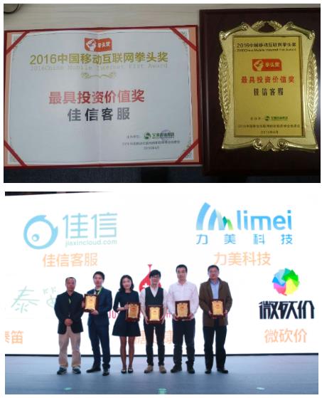 2016年4月15日,艾媒咨询集团主办的“2016中国移动互联网拳头奖”在上海圆满落幕;新一代智能全媒体客服平台——佳信客服获得“年度最具投资价