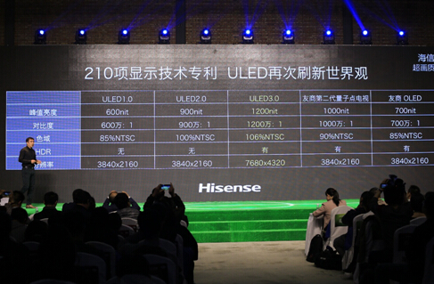 4月12日,海信在北京召开春季新品上市新闻发布会,发布了应用了第三代ULED技术成果的ULED超画质互联网电视,将液晶电视画质显示水平再推新高。