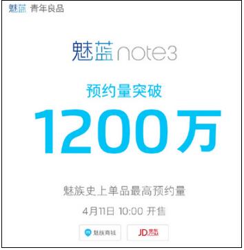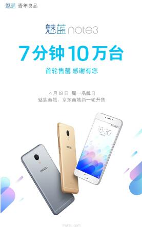 魅族新近推出的本年度首款旗舰千元机——魅蓝note3正式在魅族商城、京东商城同步首发,10万台新机官网7分钟之内火速售罄,截止至首轮发售前预
