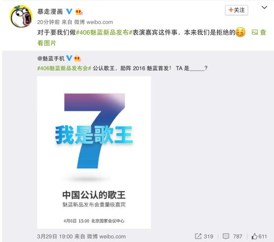 今日魅蓝手机官博再次放出一张4月6日魅蓝note3发布会嘉宾的悬疑海报,内容是“奔跑吧,综艺常客”。大家都认为该嘉宾参加过综艺节目“奔跑吧兄